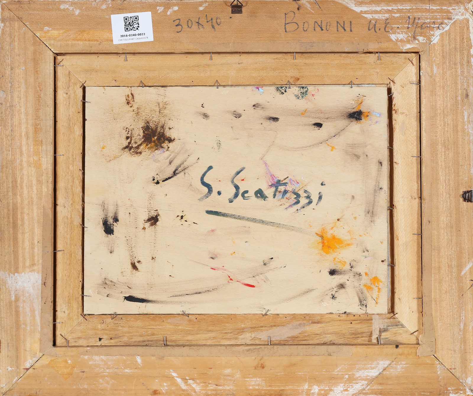 Lot 104 | SCATIZZI SERGIO (1918 - 2009) Astratto. Olio su tavola. Cm 40,00 x 30,00....