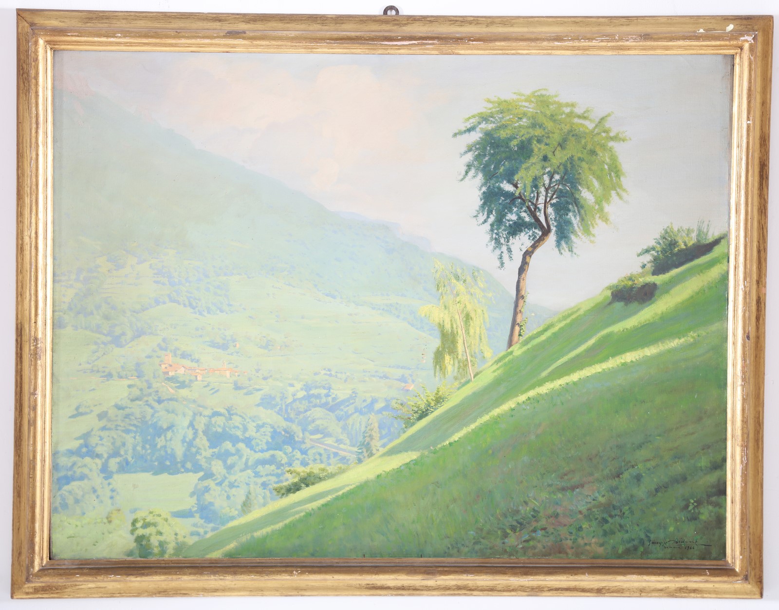 DIDONE GIUSEPPE (1903 - 1965) Somana. 1944. Olio su tela . Cm 101,00 x 76,00. Firma, titolo e anno in basso a destra. Cornice presente