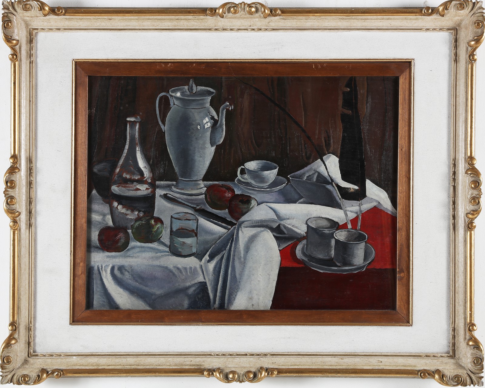 COLACICCHI GIOVANNI (1900 - 1993) Tavola con caraffa. Olio su tavola. Cm 85,00 x 50,00. Al retro firma. Cornice presente
