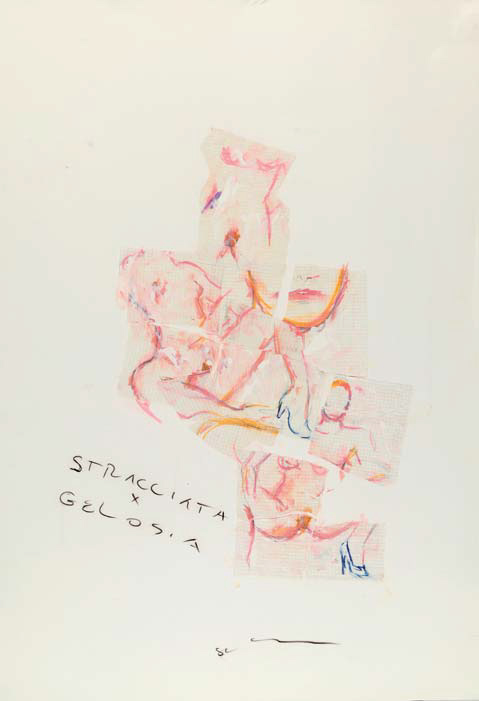 MARIO SCHIFANO (1934-1998) Stracciata per gelosia 1980 circa Tecnica mista e collage su carta cm 100x70 firmata e intitolata sul fronte Autentica dell'Archivio Mario Schifano n ° 01644100202 del 27 marzo 2010