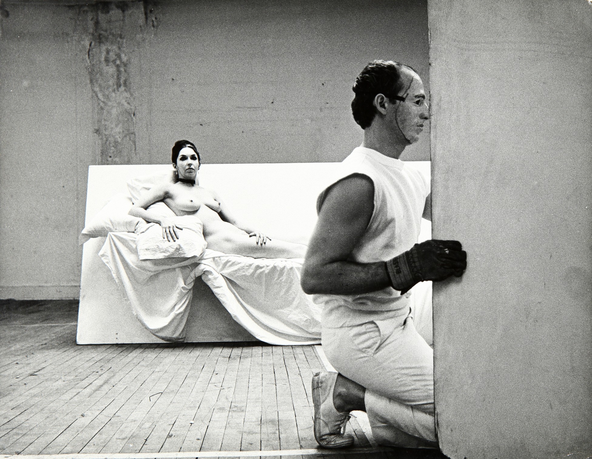 NAMUTH HANS (1915-1990) Robert Morris with Carolee Scheeman 1968 stampa alla gelatina sali d'argento - vintage 27,2x35,3 cm timbro sul retro e didascalia scritta a matita