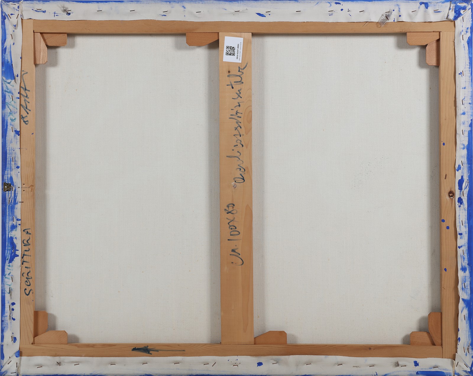 FERRARI AGOSTINO (n. 1938) Scrittura. Acrilico su tela. Cm 80,00 x 100,00. Al retro titolo e firma. Autentica dell'artista su fotografia. Anni '90.