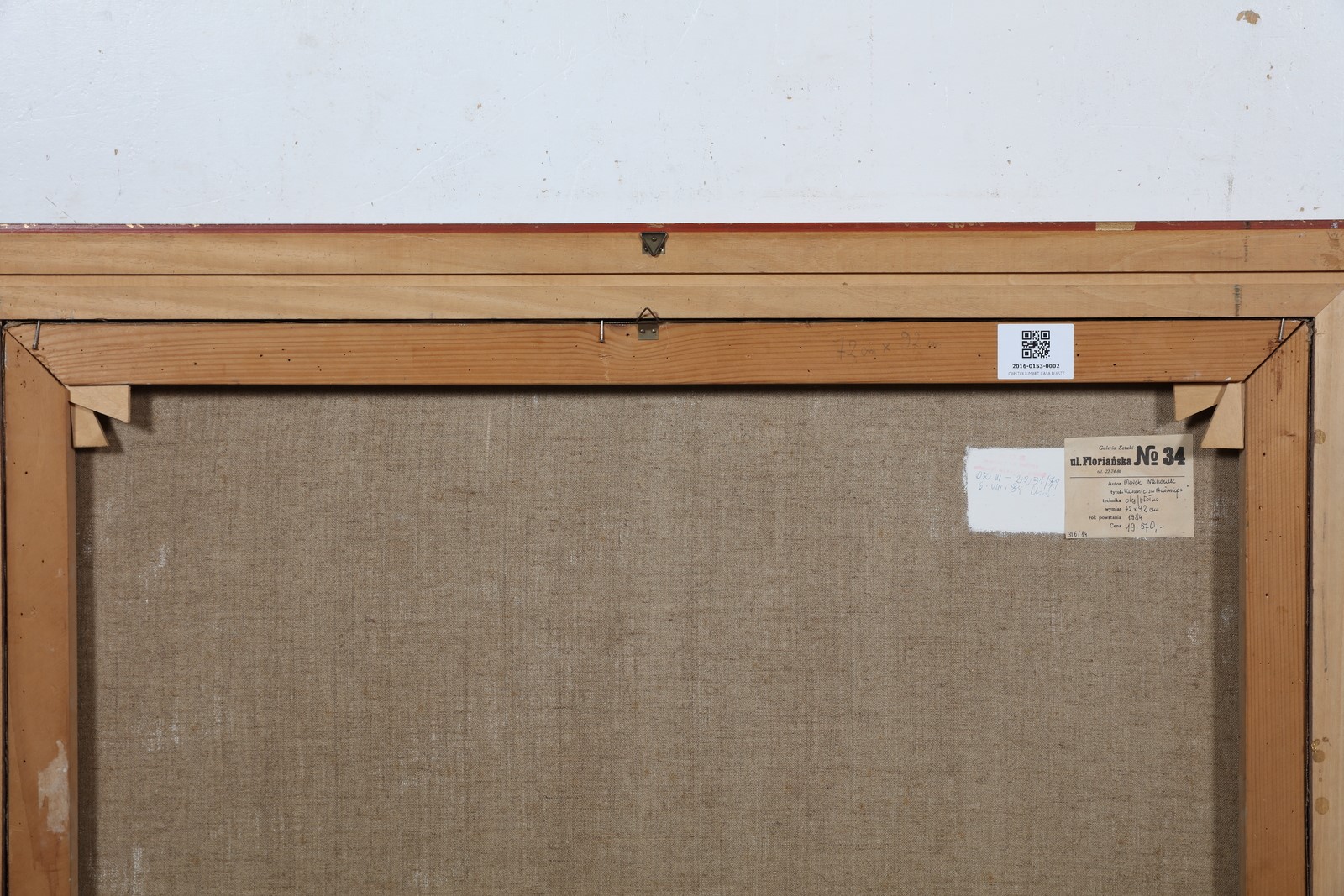 NASZACZAKN MAREK (n. 1944) Tentazione di San Antonio. . 1984. Olio su tela. Cm 92,00 x 72,00. Firma in basso a sinistra. Al retro cartiglio descrittivo a cura della Galeria Sztuki.