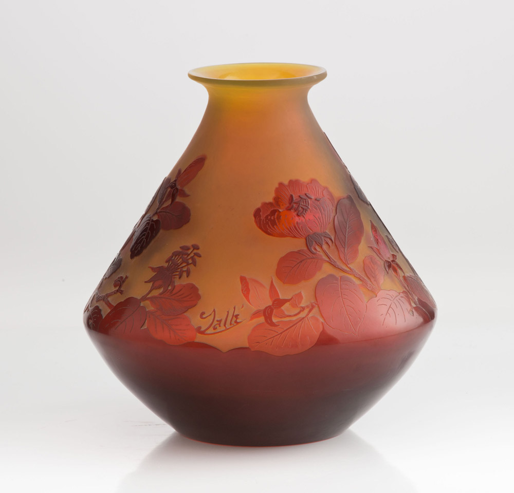VASO IN VETRO GALLE` CAMMEO, 1896-1900 A forma ovoidale, decoro ad amaryllis...