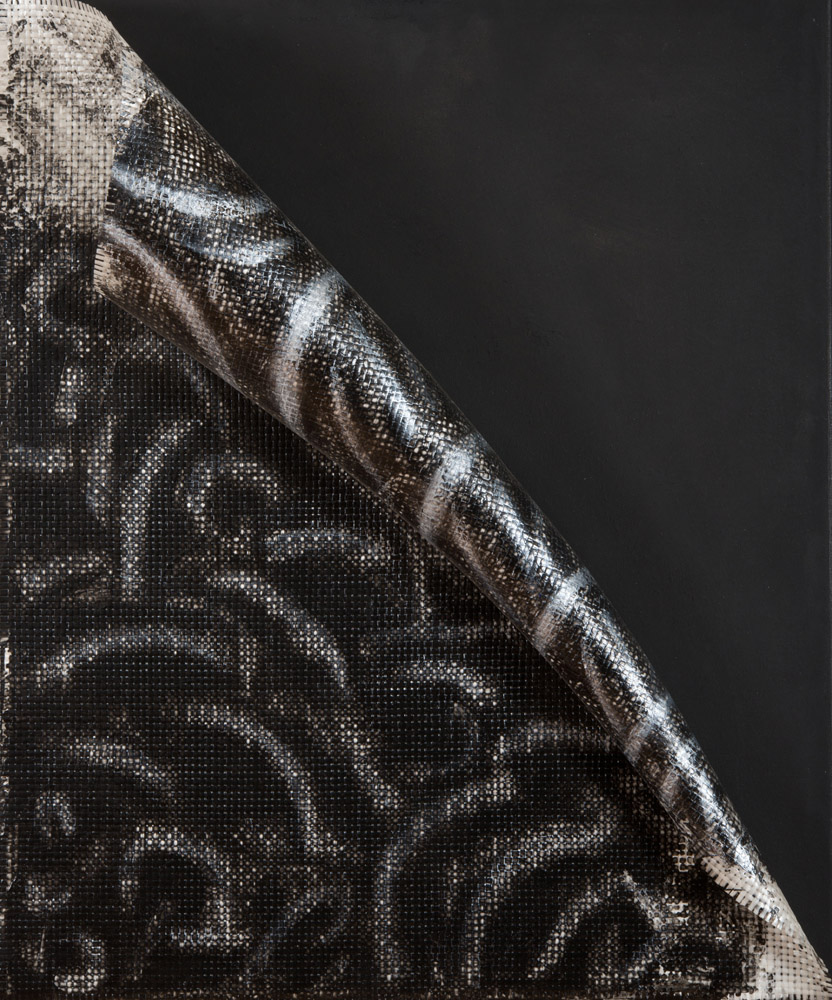 Acrilico su tela e arrotolamento in fibra di vetro, cm. 50 x 60 x 13