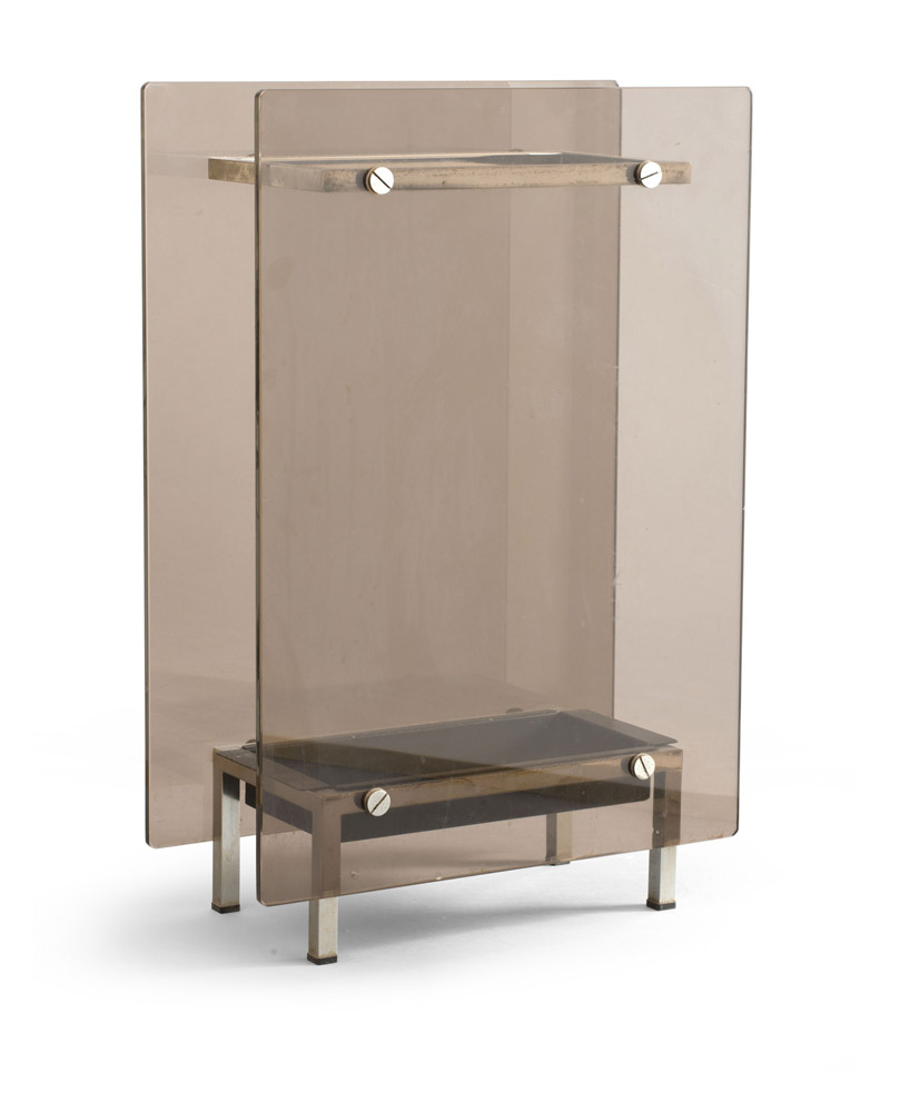 PORTAOMBRELLI ANNI '70 Portaombrelli in acciaio e vetro fumè di forma...