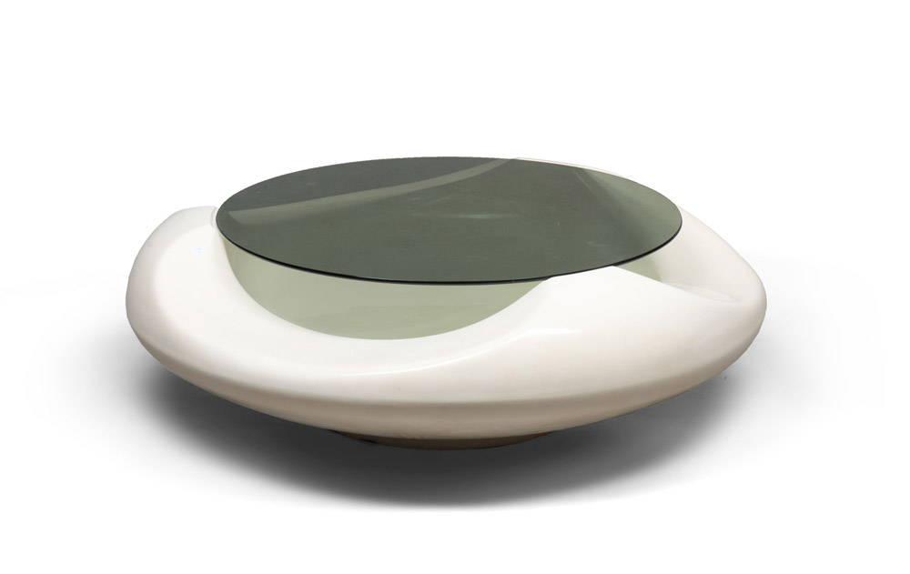 TAVOLO DA SALOTTO, ANNI '80 con struttura in resina e piano in plexiglass...