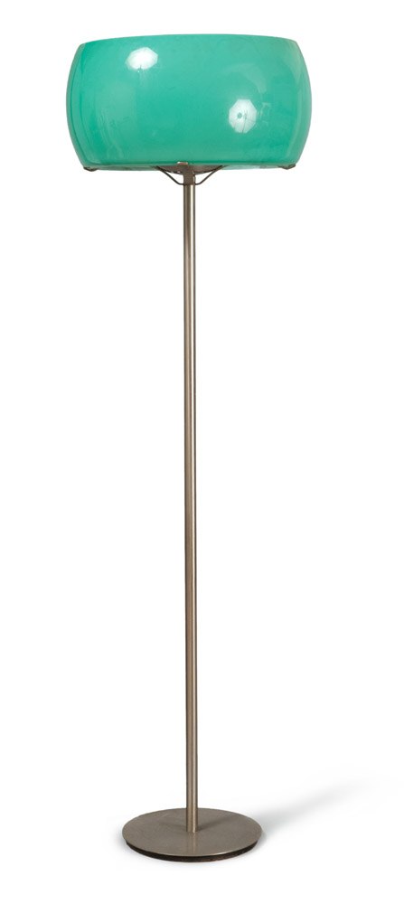 con struttura in metallo e cappello circolare in vetro opalino verde