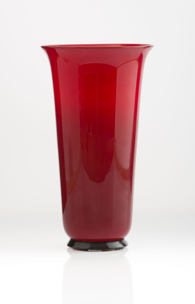 VASO OPALINO VENINI, 1986 Vaso a forma di calice rosso in vetro soffiato con...
