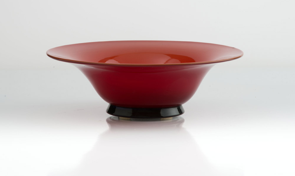Centrotavola in vetro di Murano soffiato opalino di colore rosso. Modello 500,07