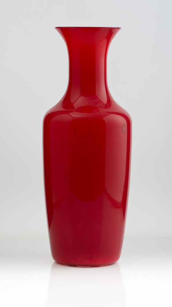 VASO OPALINO VENINI Grande vaso rosso aranciato in vetro soffiato con la...