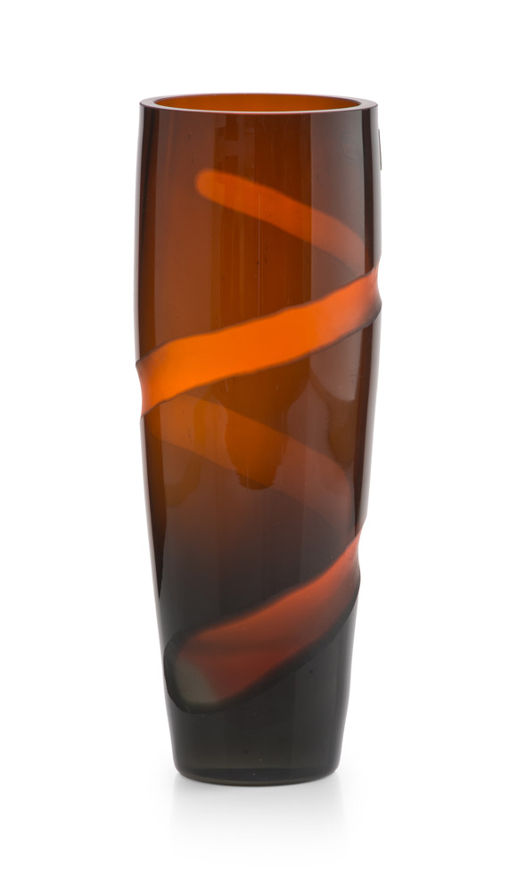 Vaso in vetro di Murano rosso decorato con un nastro lavorato alla mola.