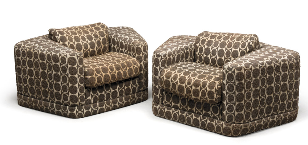 Lot 310 | COPPIA DI POLTRONE, ANNI '70 imbottite, con tappezzeria in stoffa...