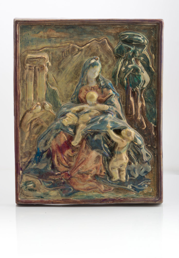 Ceramica policroma invetriata, cm. 39 x 31 x 7
