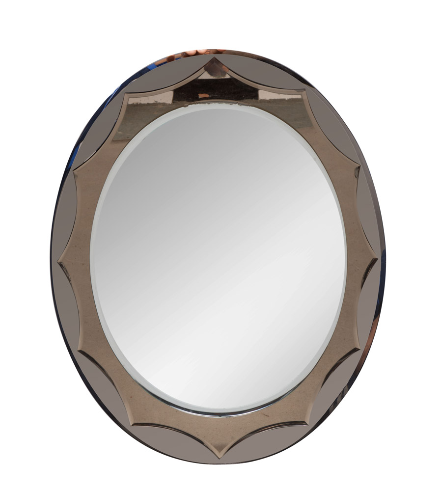 Lot 376 | SPECCHIO OVALE, ANNI '70 in vetro con decorazioni fumè Misure, cm. 60 Ø...