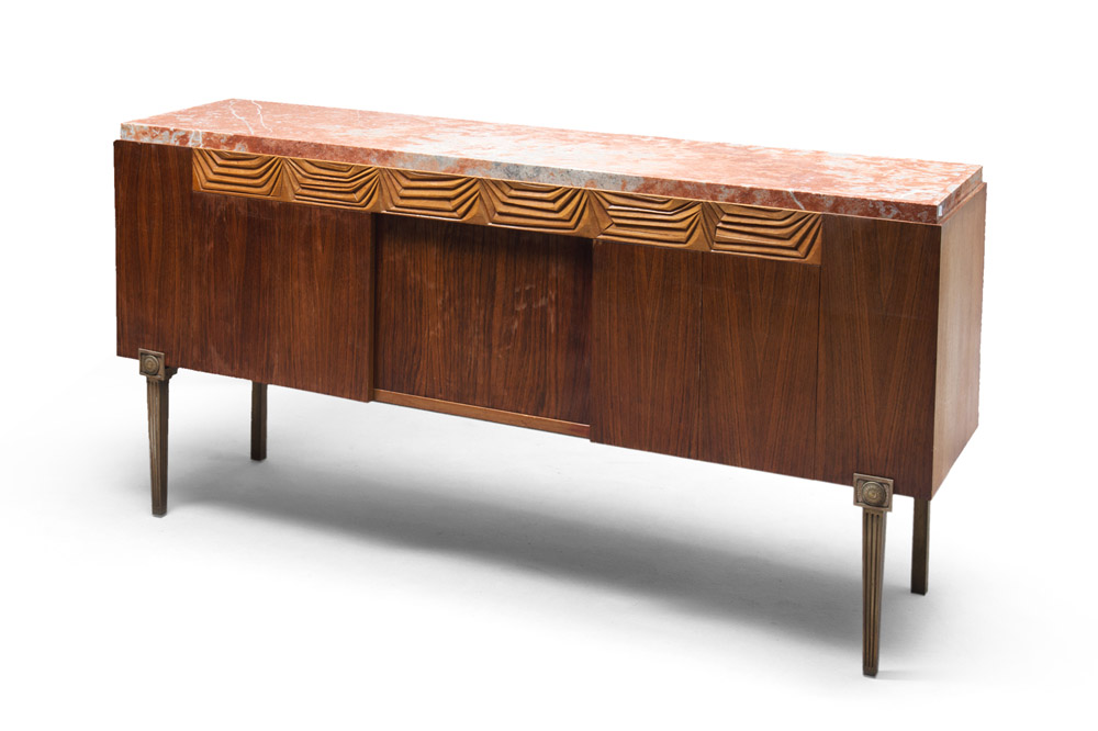 BUFFET IN FAGGIO, ANNI '50 con piani in breccia rossa e fascaia del fronte in...