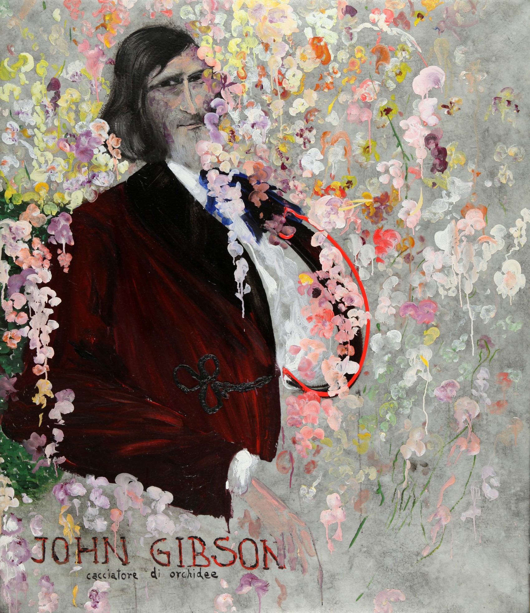 ALDO MONDINO (1938-2005) John Gibson-cacciatore di orchidee 2004 olio su linoleum cm 140x120 firmato sul retro autentica dell'artista su foto autentica dell'archivio Mondino num 20060120095351
