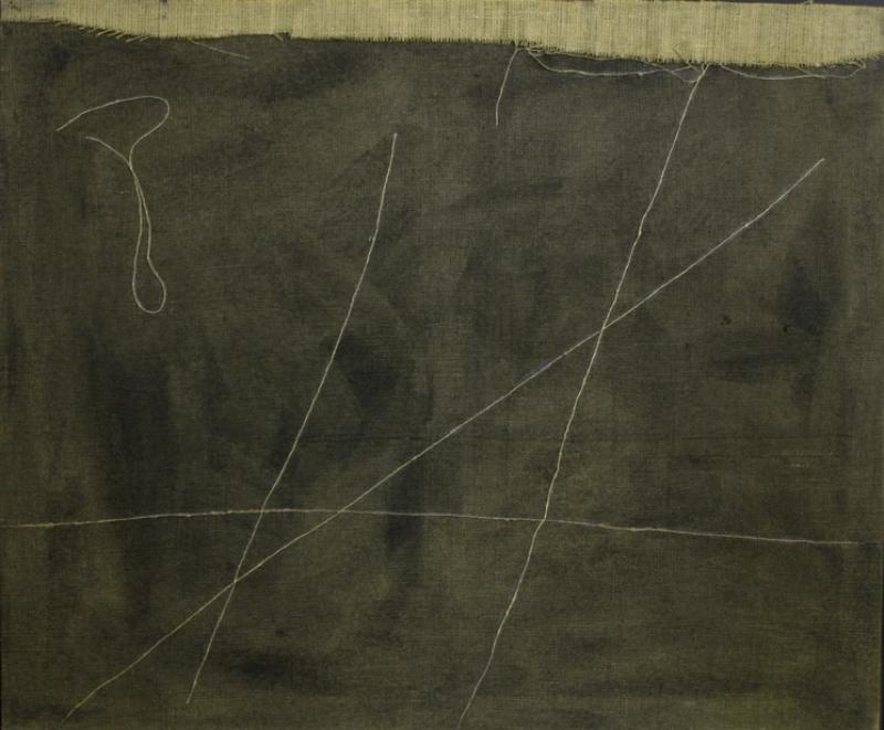 ACHILLE PACE (Termoli (CB) 1923) Senza titolo 1990 tempera e filo su juta cm 100x121 autentica dell'artista su foto pubblicazioni:catalogo mostra "Achille Pace e il Gruppo Uno" Galleria Palestro Ferrara 2006