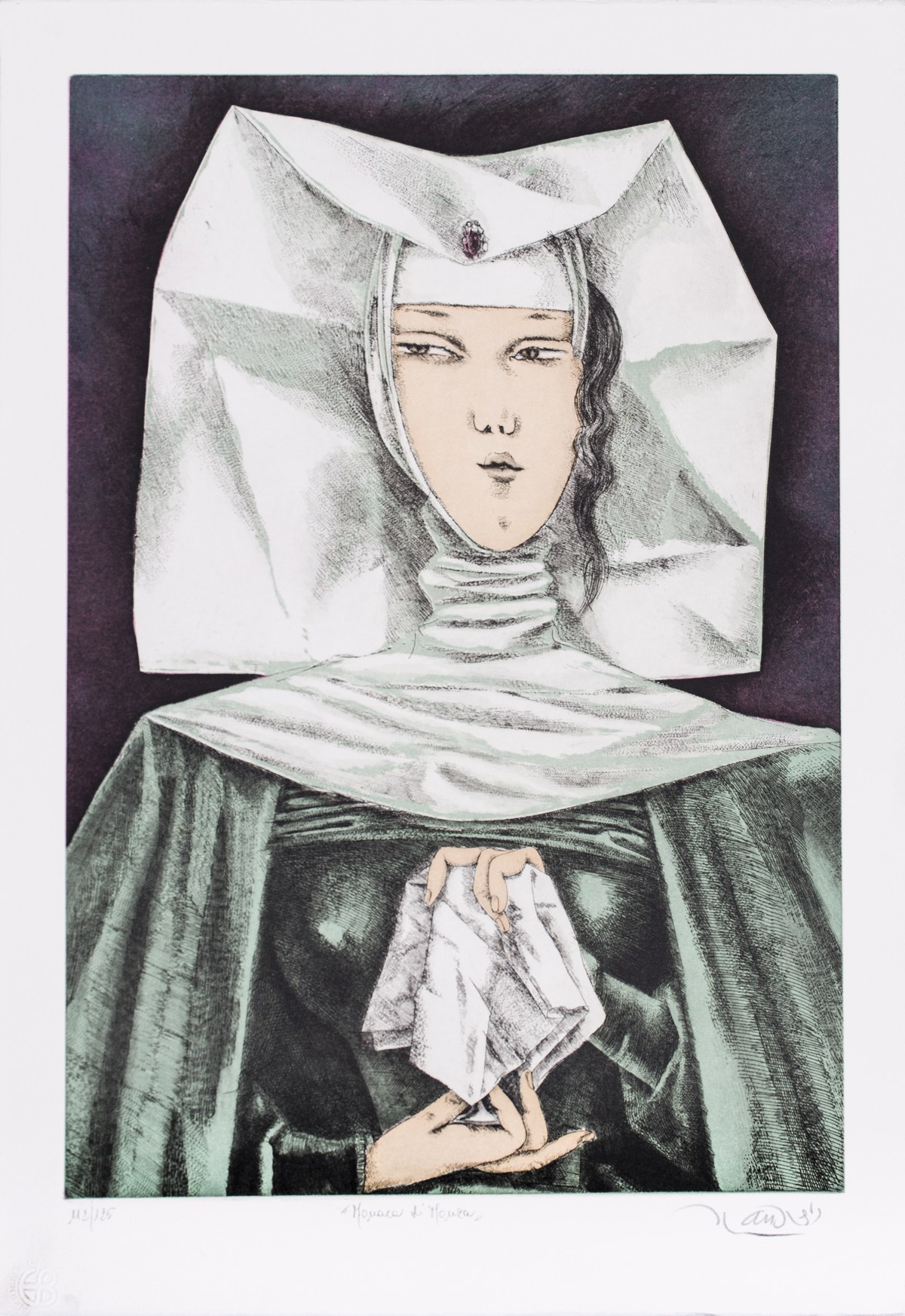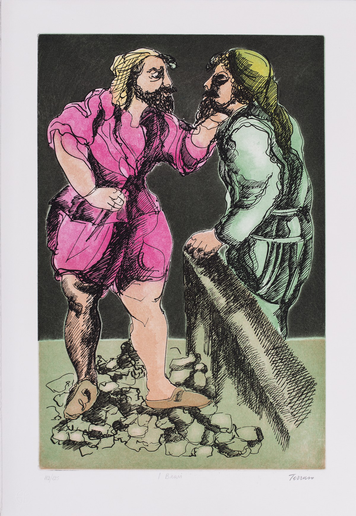 Cartella contenente 12 acqueforti di Autori Vari su carta Magnani (Brindisi, De Andreis, Stefanelli, Tamburi, Terruso, Treccani)