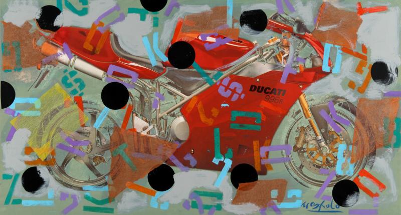 UGO NESPOLO (Mosso Santa Maria (BI) 1941) Moto Ducati acrilico e collage su...