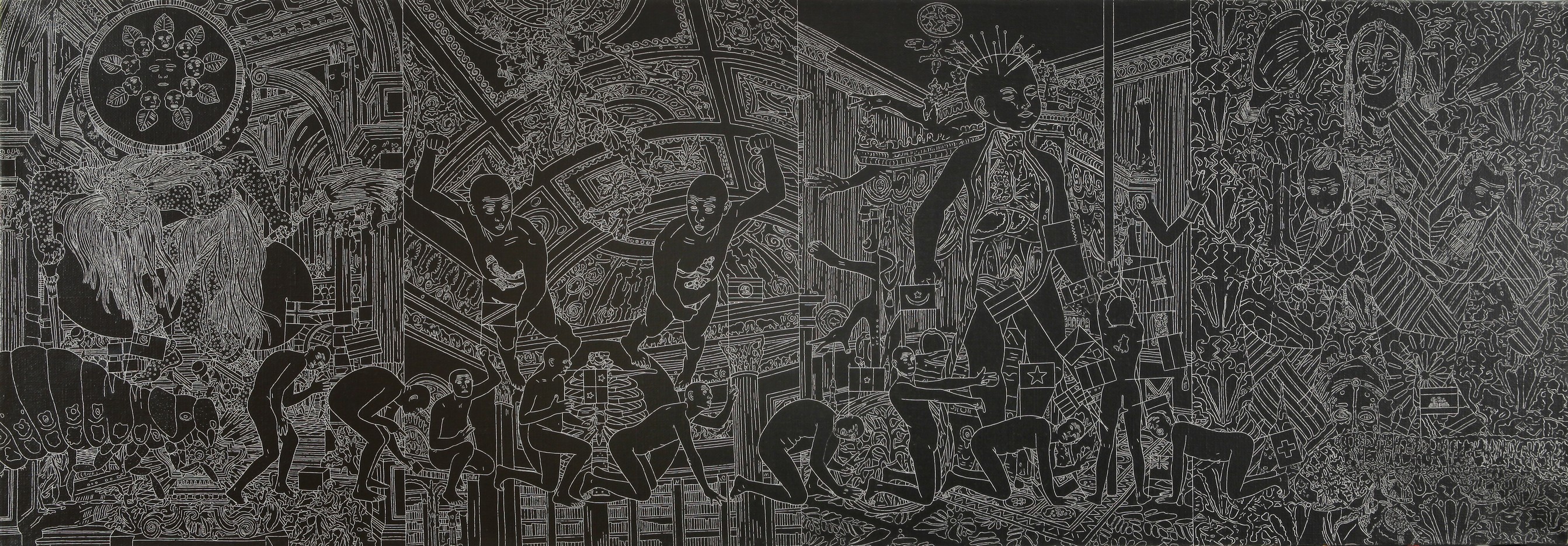CANAVACCIUOLO MAURIZIO (1954-) Piccola processione in...1999 olio su tela cm 70x200 firmato datato e titolato sul retro provenienza Galleria Cardi Milano