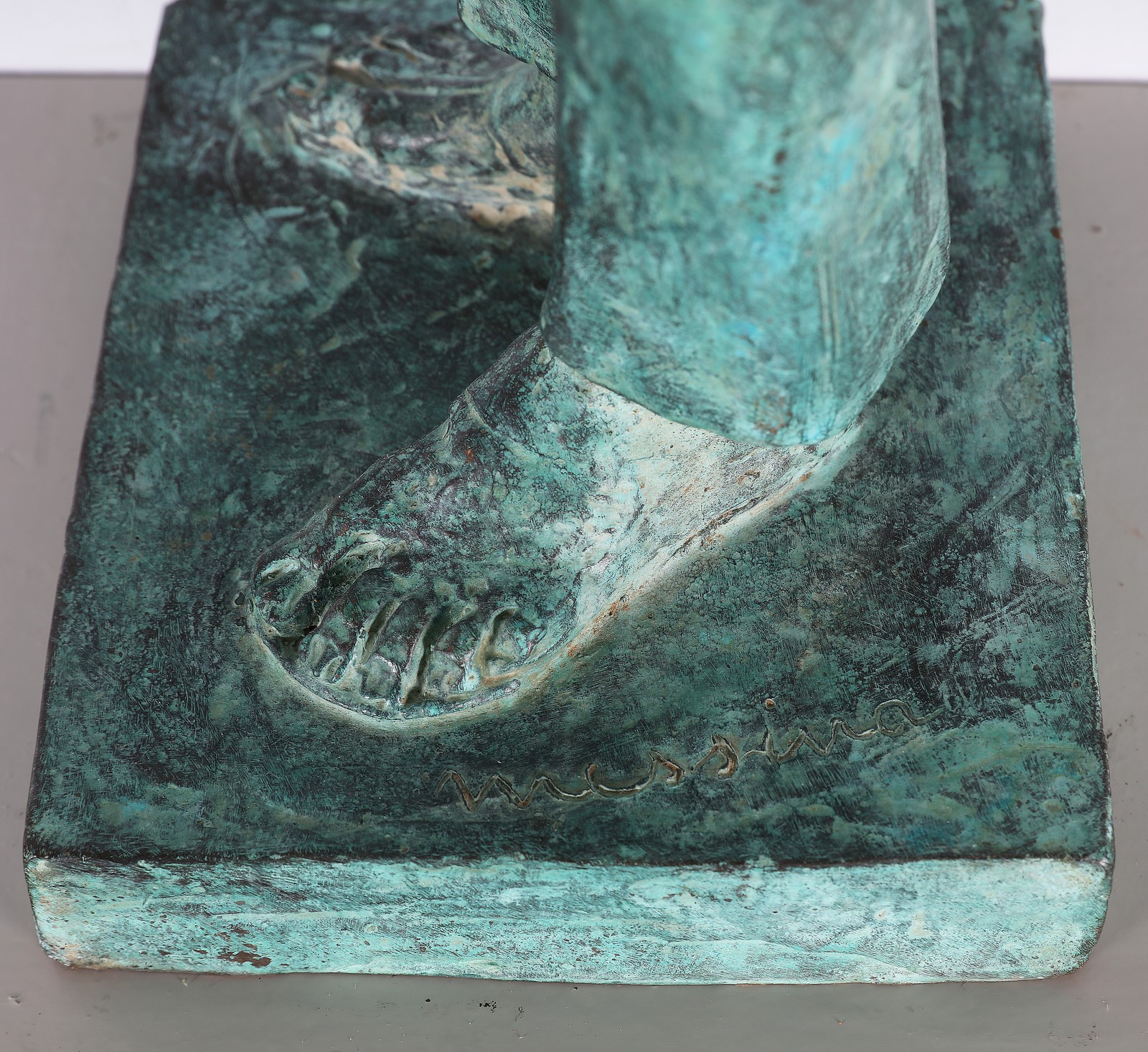 MESSINA FRANCESCO (1900 - 1995) Ragazza in bleu jeans. 1967. Bronzo a patina verde. Cm 70,00. Firma alla base. Autentica dell'artista su fotografia riportante la data di esecuzione. Si ringrazia l'archivio Messina per aver confermato verbalmente l'autenticità dell'opera.