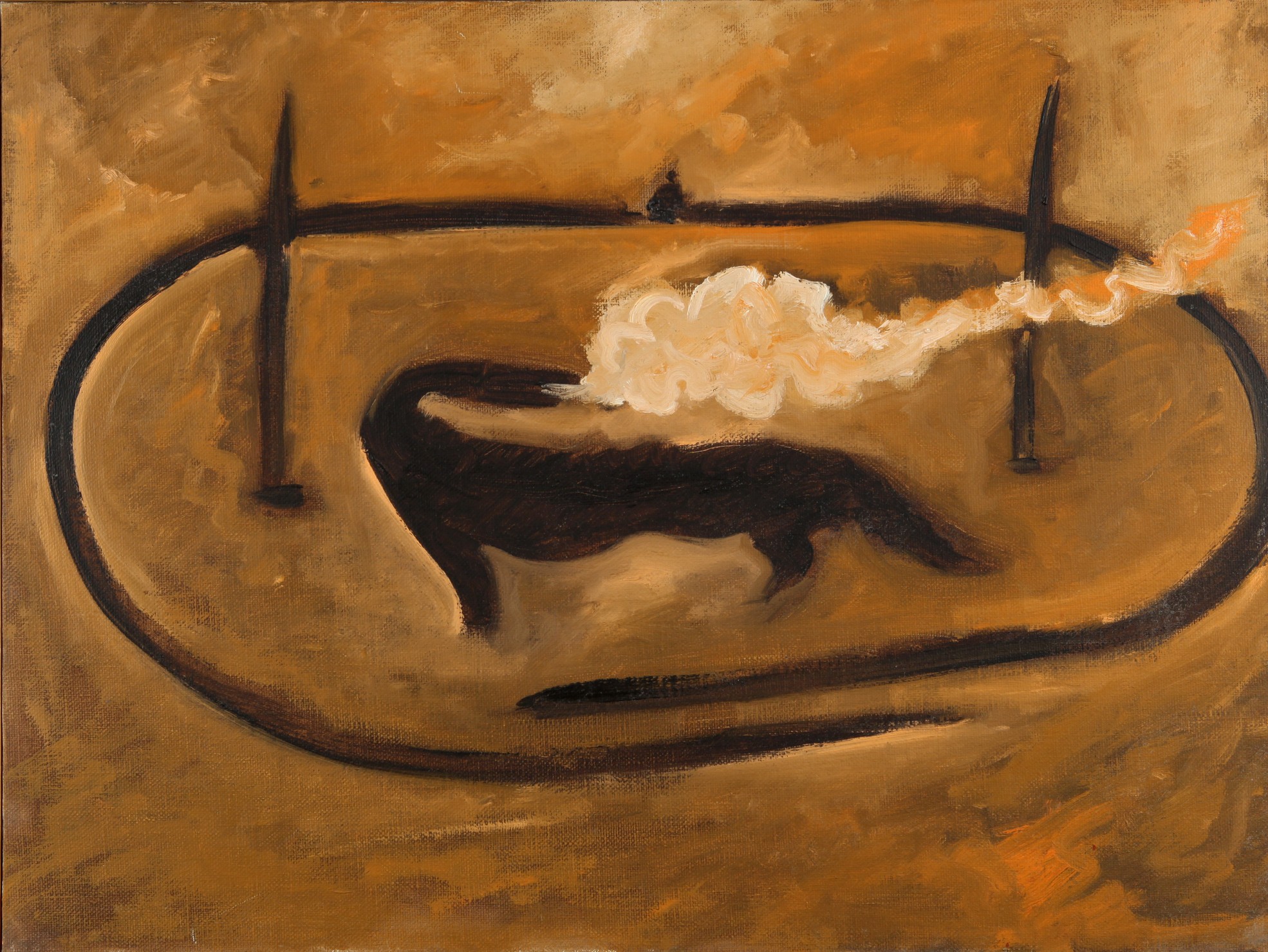 MARCO DEL RE (1950-) Senza titolo 1986 olio su tela cm 60x80 firmato e datato sul retro autentica dell'artista su foto