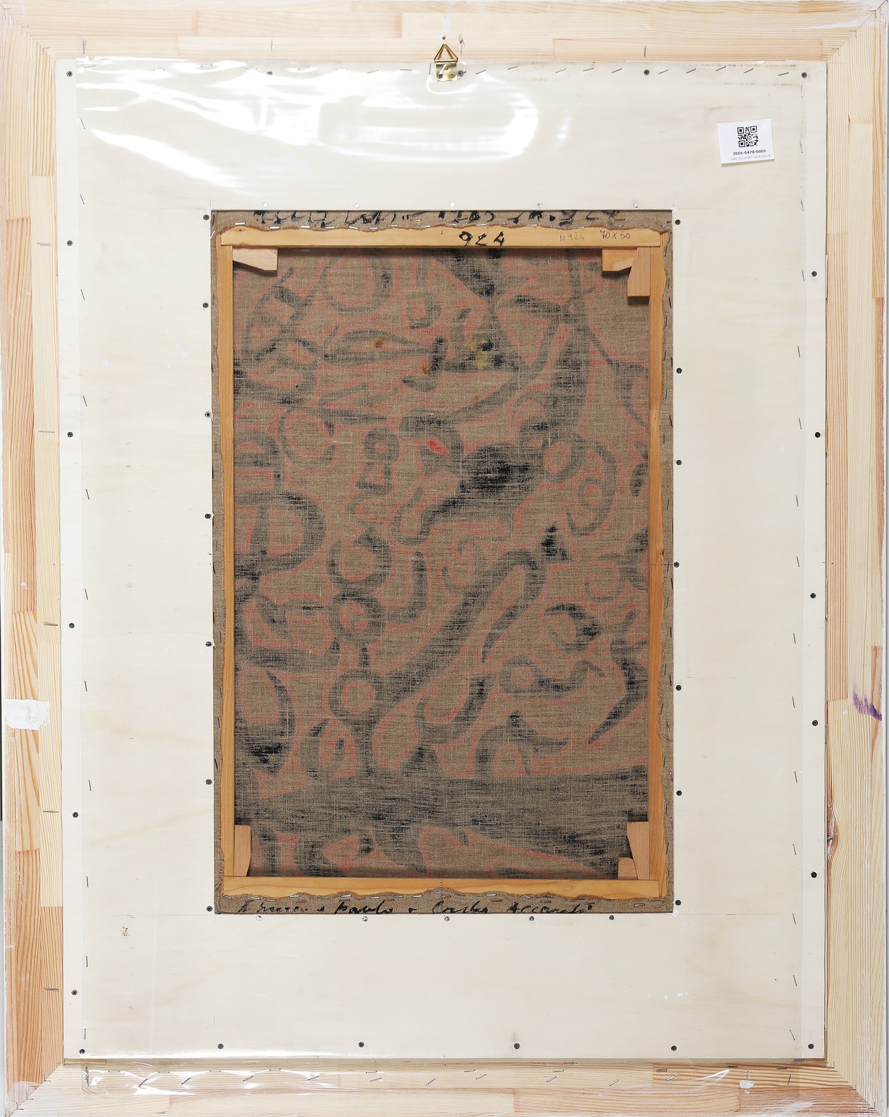 ACCARDI CARLA (n. 1924) Redblack. 1985. Vinyl on canvas. Cm 50,00 x 70,00. Signed and dated lower left. At hte back: title, year and dedication. Artist's authenticity certificate on photo. Pubblication: Germano Celant - Carla Accardi - Edizioni Charta/Zerynthia, Milano Roma, 2001, n. 1985 9, p.399. Cornice presente