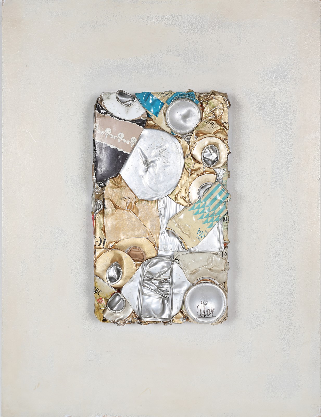 BALDACCINI CESAR (1921 - 1998) Senza titolo. . 1970. Compressione di lattine. . Cm 35,00 x 21,00. Firma in basso a destra. Autentica su fotografia a cura dell'artista.