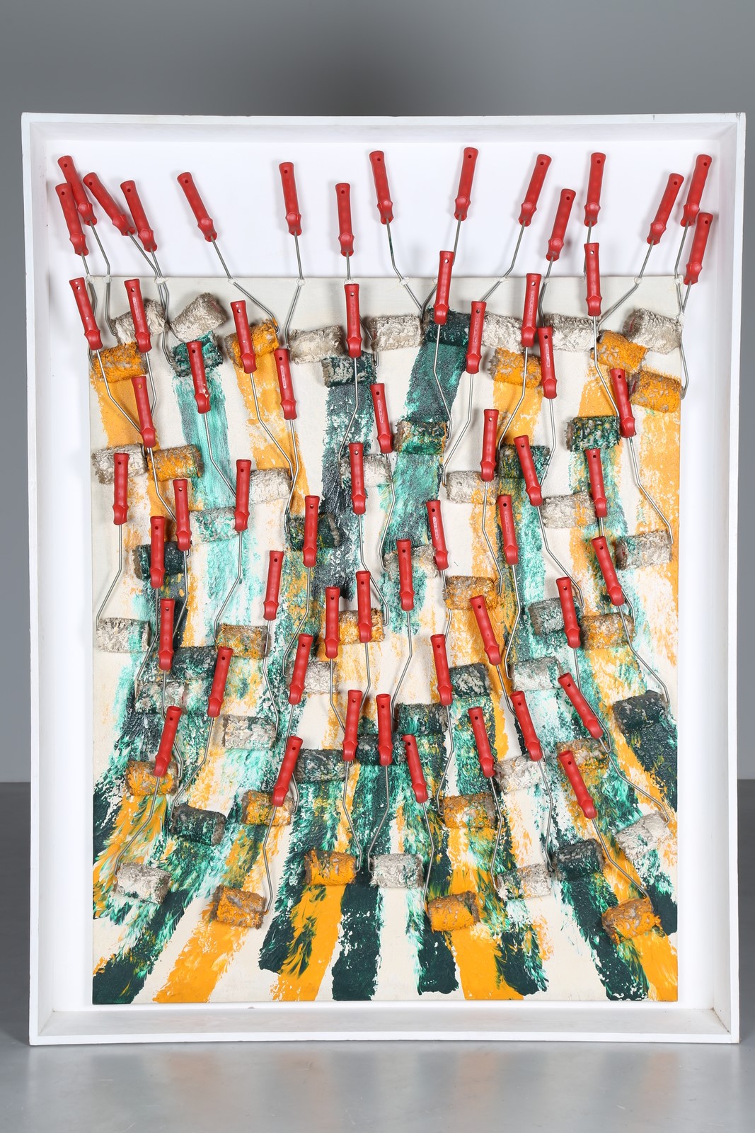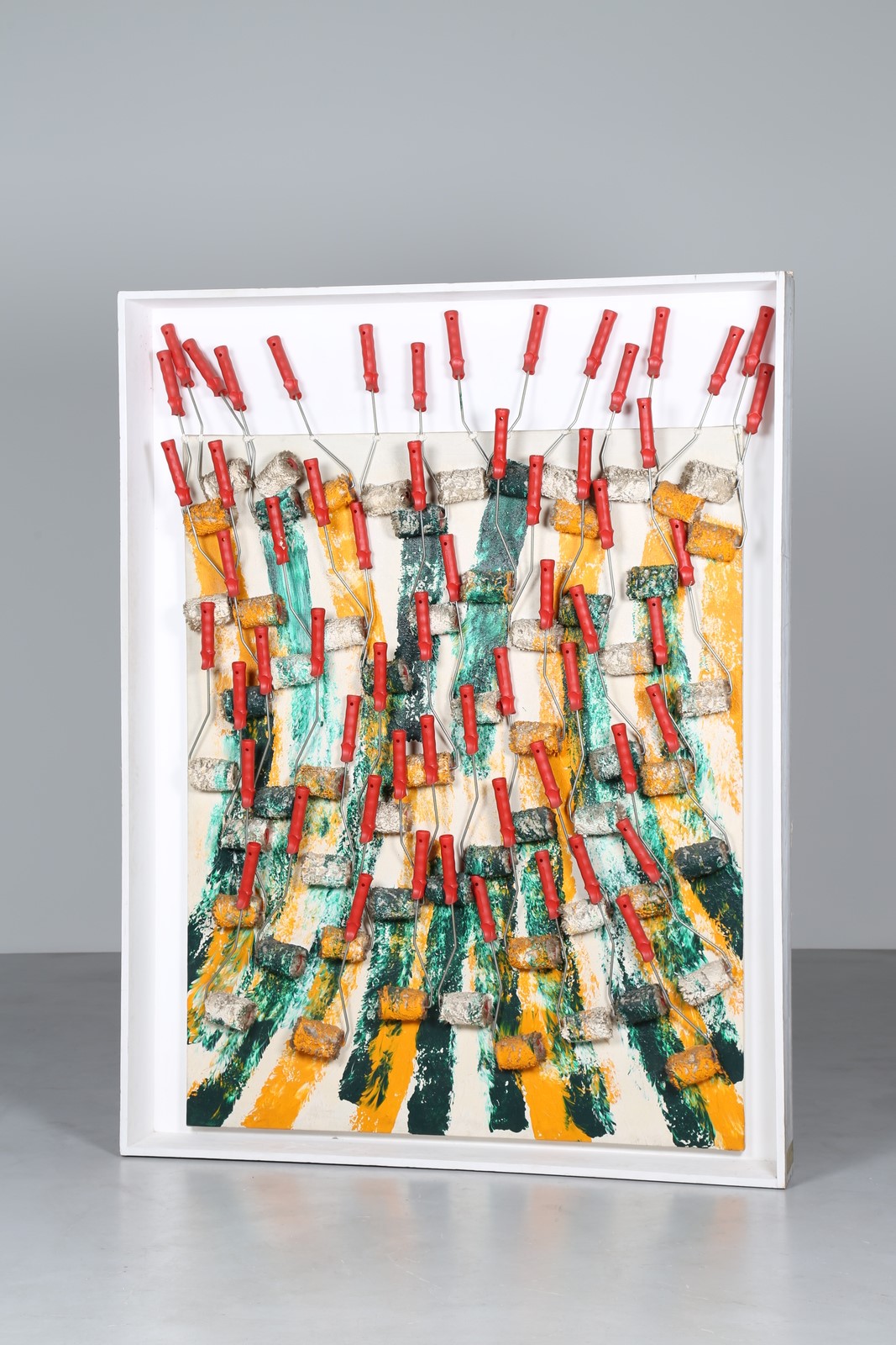ARMAN FERNANDEZ (1928 - 2005) Statement. 1990. Tecnica mista su tavola. Cm 130,00 x 160,00. Autentica dell'artista su fotografia. Opera archiviata presso l'Archivio Durand Ruel, Parigi, come da documentazione fotografica allegata all'opera riportante il relativo numero d'inventario. Cornice presente