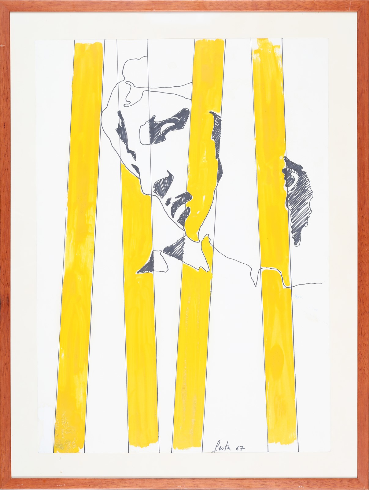 FESTA TANO (1938 - 1988) Michelangelo. 1967. Tecnica mista su carta. Cm 50,00 x 70,00. Anno e firma in basso a pennarello. Provenienza: Galleria Mancini, Pesaro. Autentica su fotografia a cura dello Studio Soligo - Archivio Storico Tano Festa riportante il relativo numero d'inventario. Cornice presente