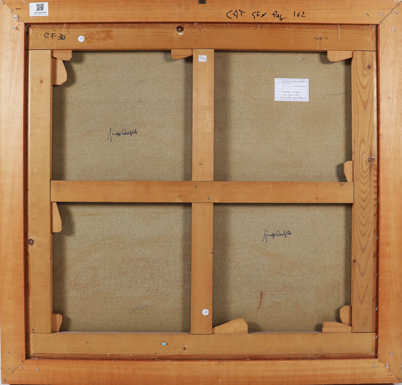 SCHIFANO MARIO (1934 - 1998) Untitled. Enamel on canvas. Cm 95,00 x 100,00. Signed lower right. Signed at the back. Mario Schifano Foundation authenticity certificate, dated 2000 March 15th, on photo. Cornice presente
