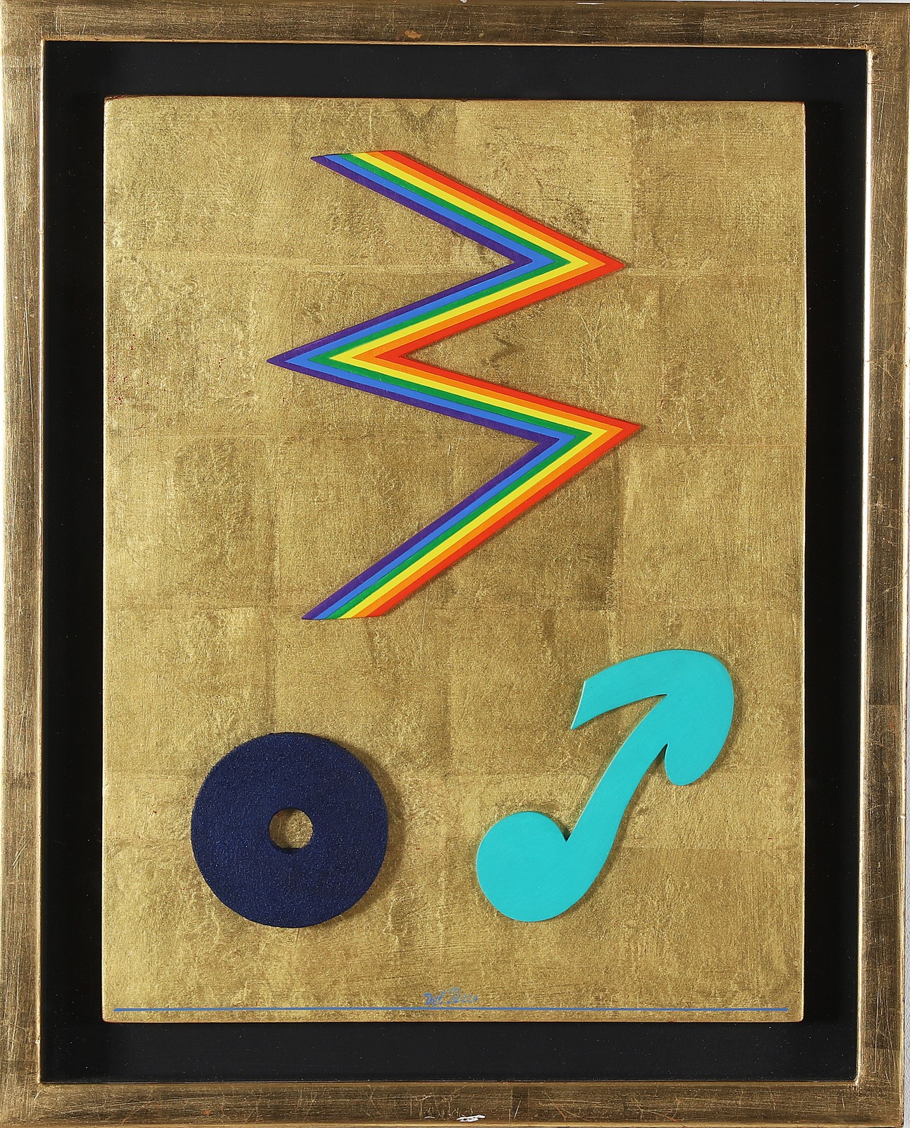 DEL PEZZO LUCIO (n. 1933) Zig - zag a fondo oro. Tecnica mista e collage su...