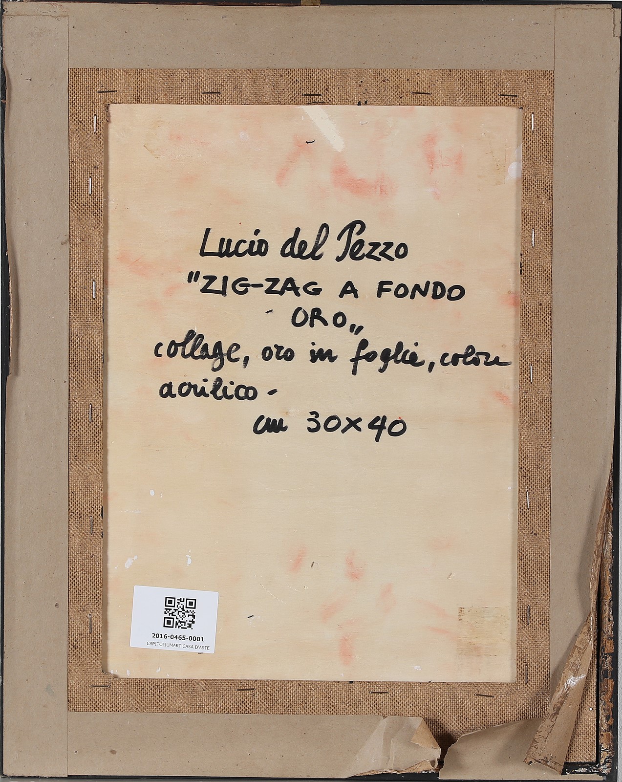 DEL PEZZO LUCIO (n. 1933) Zig-zag. Mixed media and collage on board. Cm 30,00 x 40,00. Signed lower center. Tile and signature at the bac. Cornice presente
