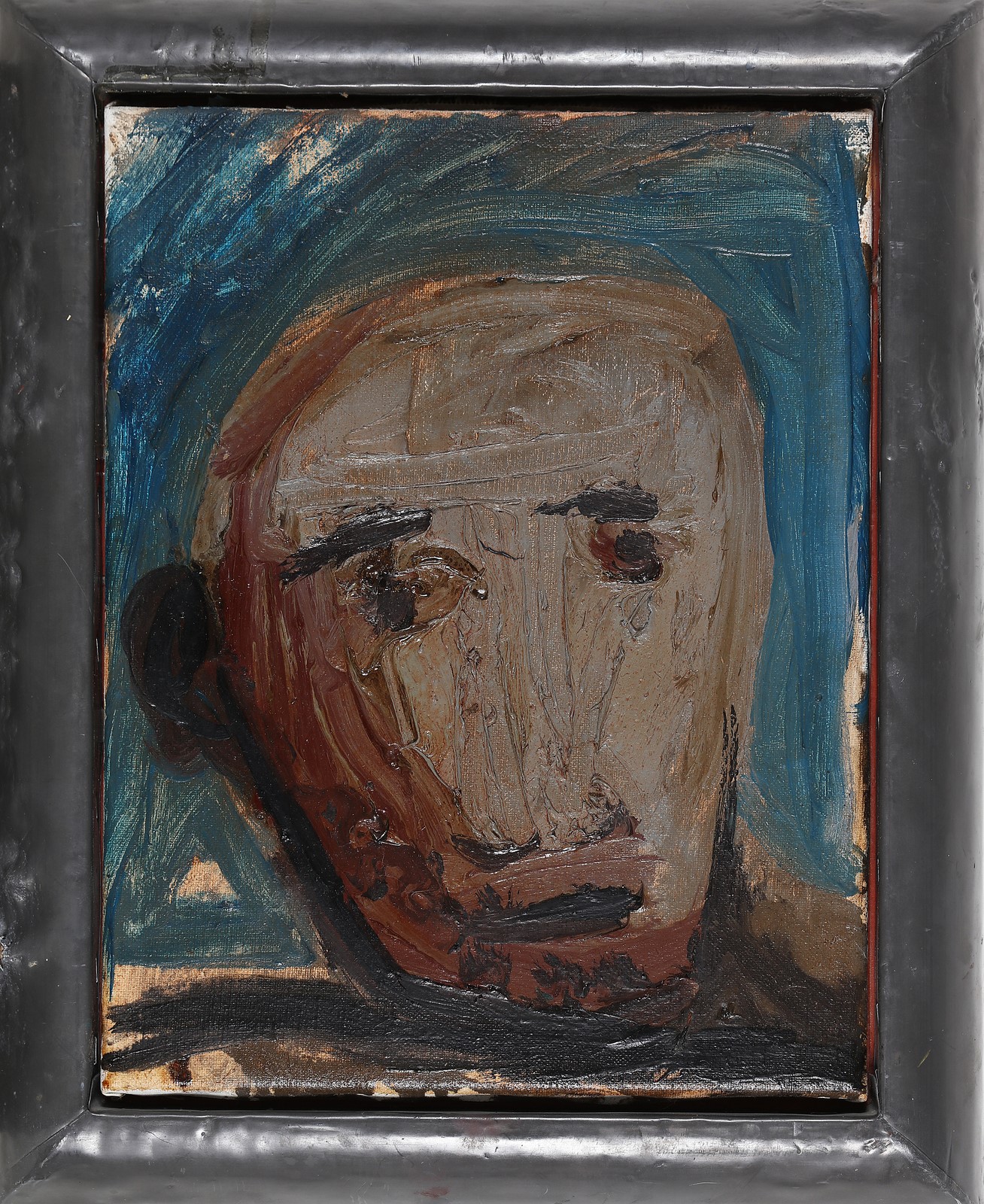 LUPERTZ MARKUS (n. 1941) Kopf 1. Olio su tela. Cm 27,00 x 36,00. Al retro titolo, firma e cartiglio della Galleria Cleto Polcina, Roma. Cornice in piombo eseguita dall'artista (cm 46x37). Cornice presente