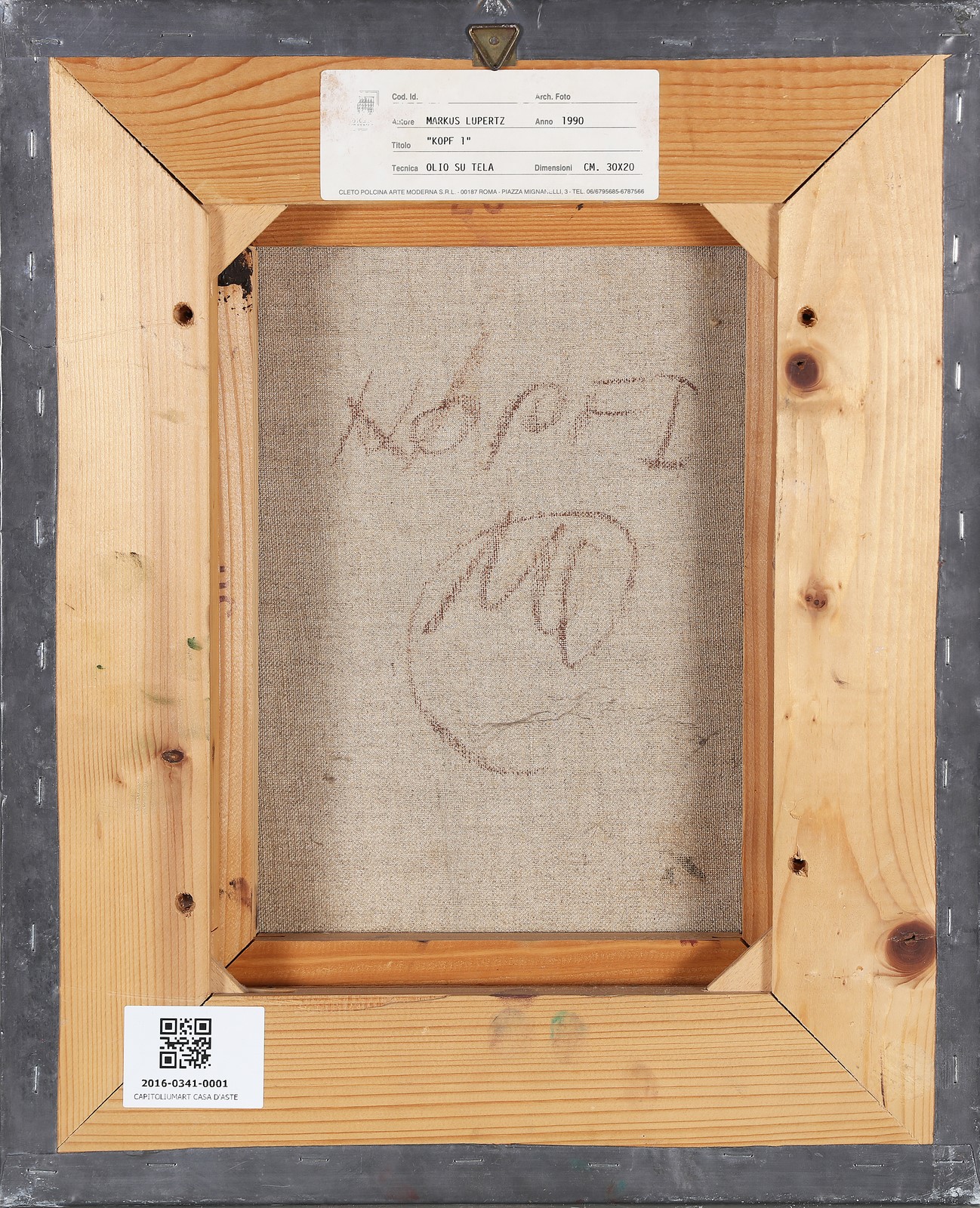 LUPERTZ MARKUS (n. 1941) Kopf 1. Oil on canvas. Cm 27,00 x 36,00. Signature, title and Cleto Polcina Gallery, Rome, label at the back. Artist's lead frame (cm 46x37). Cornice presente