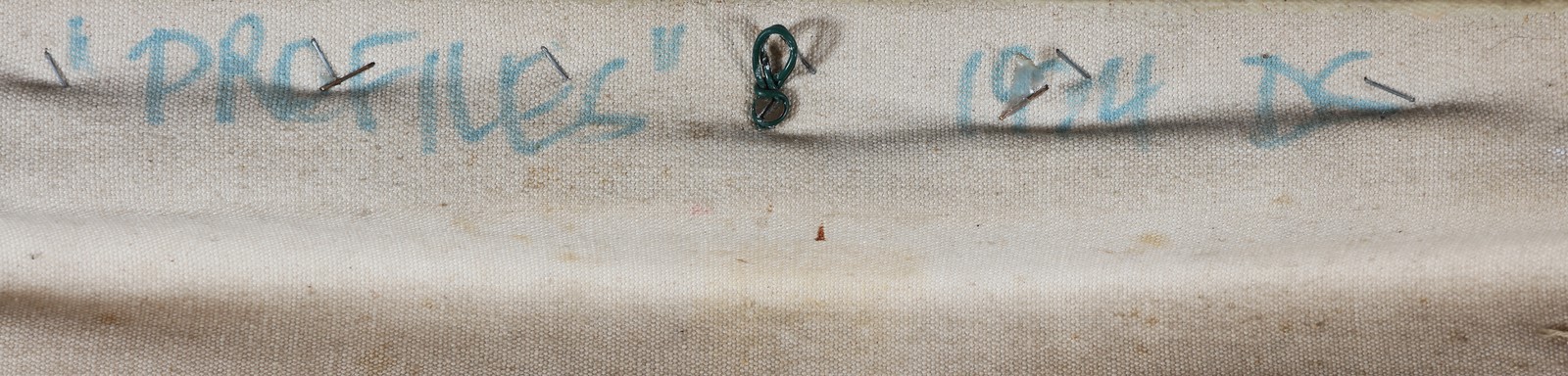 SANDERSON DOUGLAS (n. 1942) Profiles. . 1974. Tecnica mista su tela. Cm 71,50 x 76,50. Al retro titolo firma anno e cartiglio descrittivo a cura della Galleria Studio La Città, Verona.