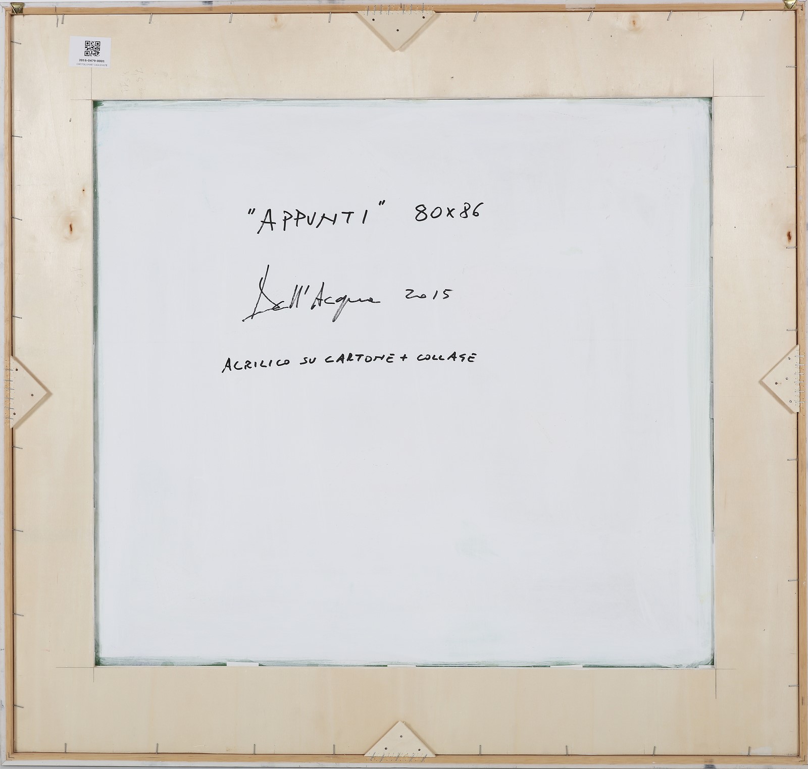 DELL'ACQUA GIOVANNI (n. 1952) Notes. 2015. Mixed media on cardboard. Cm 86,00 x 80,00. Artist's authenticity certificate on photo. Cornice presente