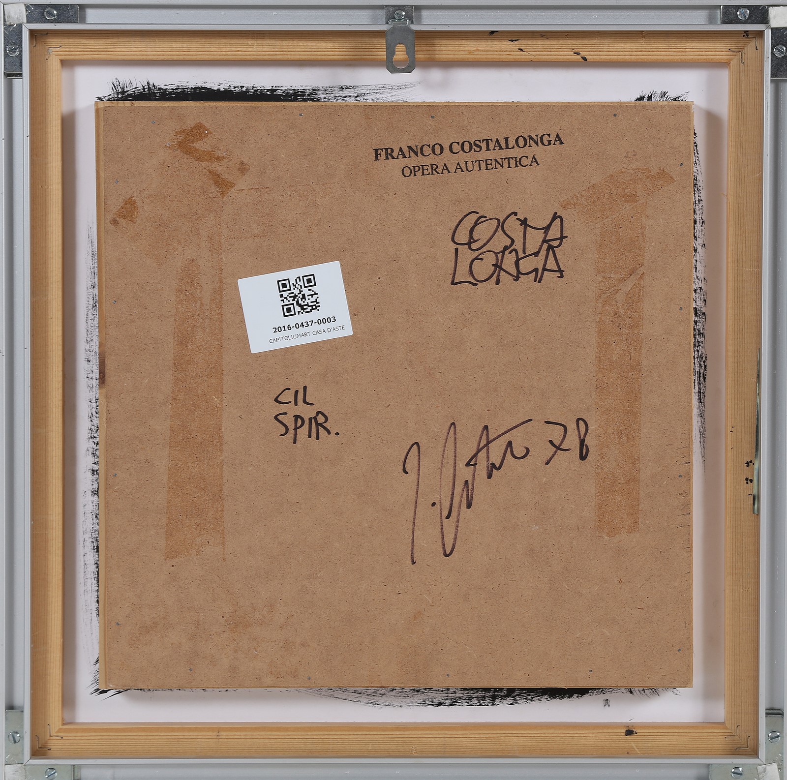 COSTALONGA FRANCO (n. 1933) Senza titolo. 1978. Tecnica mista su tavola. Cm 30,00 x 30,00. Al retro firma, anno e timbro per autentica firmato dall'artista. Autentica dell'artista su fotografia. Opera contenuta in una teca di plexiglass. Cornice presente