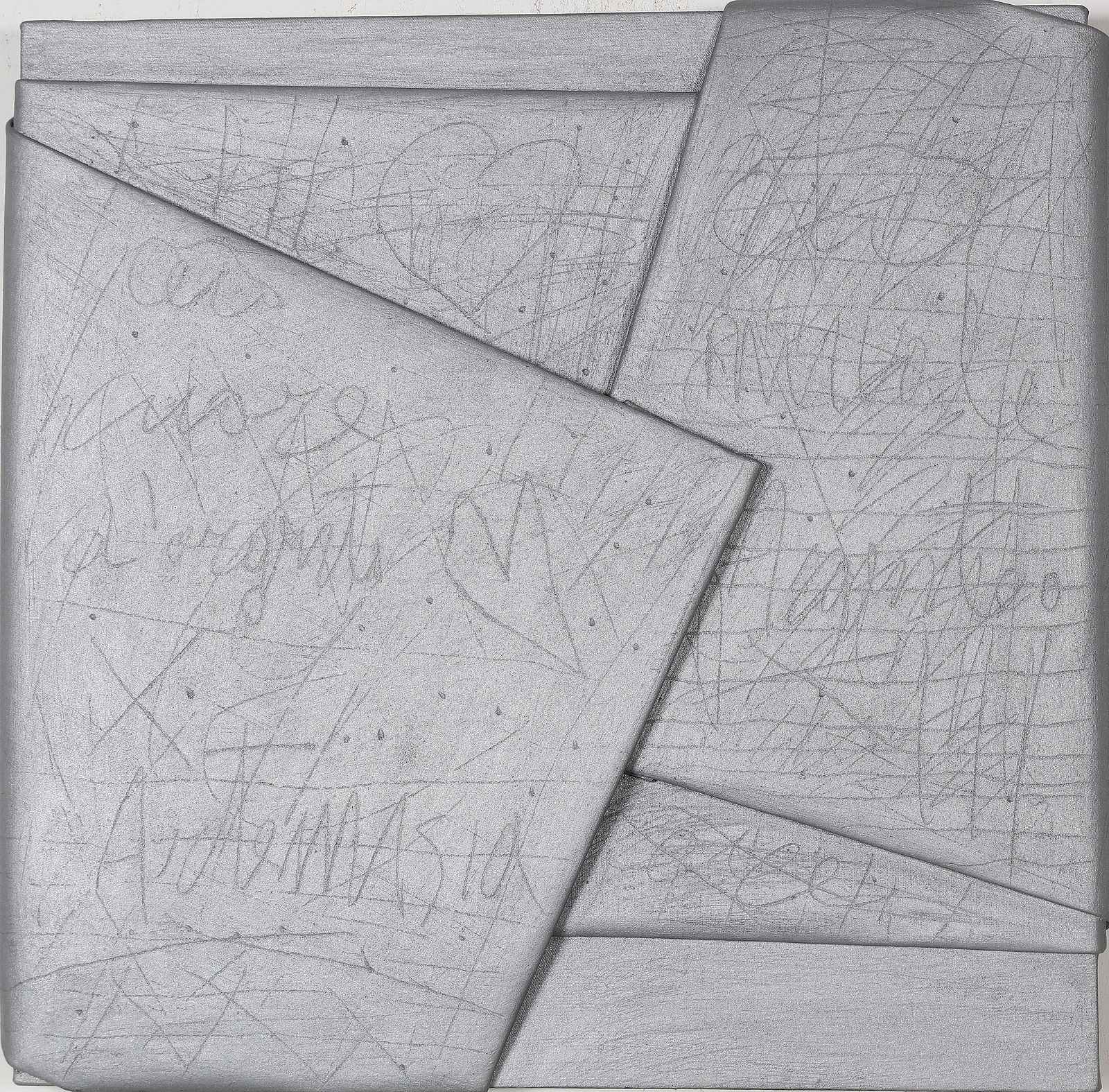 BERLINGERI CESARE (n. 1948) Silver folded. 2015. Mixed media on folded canvas. Cm 51,00 x 52,00. Title, signature and year at the back. Pubblication: exhibition catalog at Armanda Gori, Prato, 2016 February 5th to April 30th.