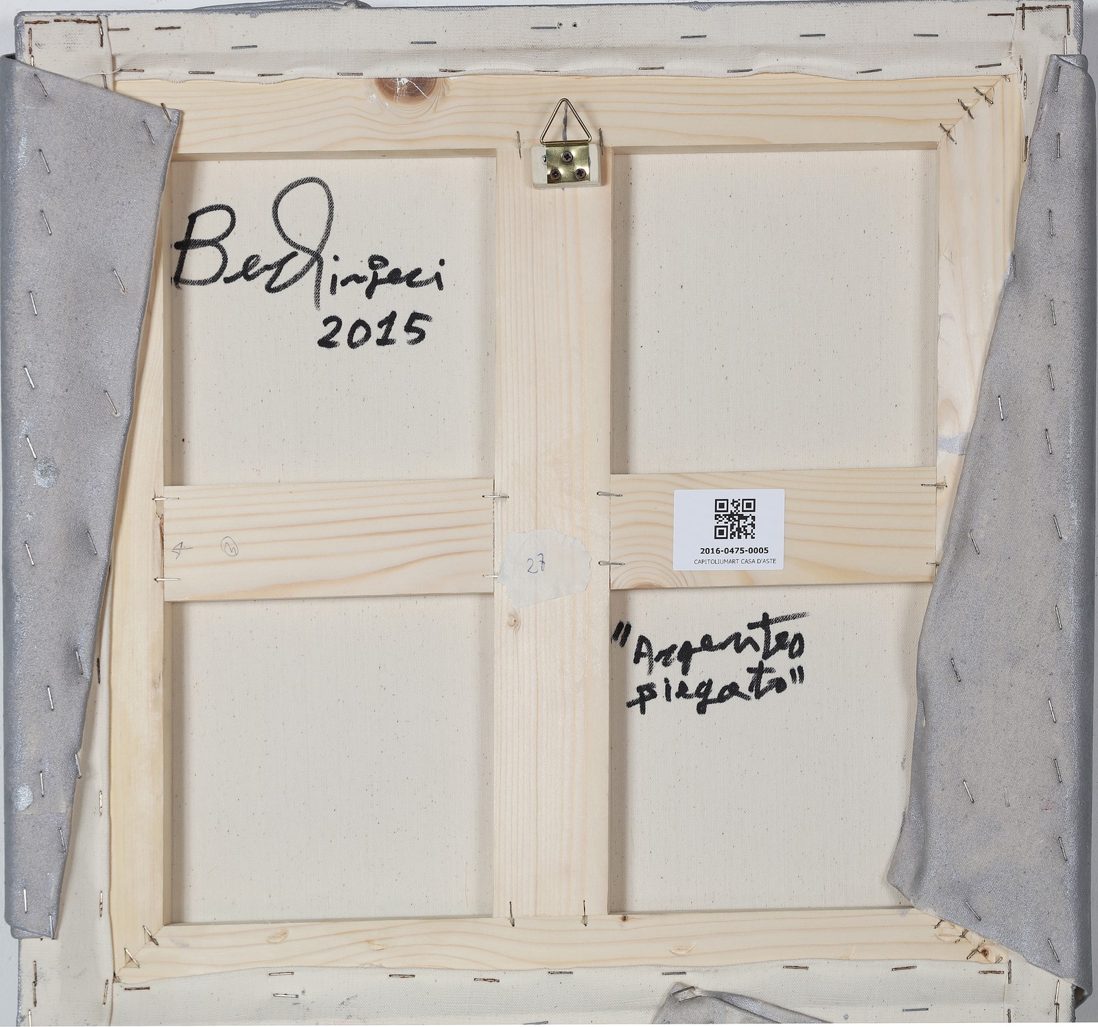 BERLINGERI CESARE (n. 1948) Argenteo piegato. 2015. Tecnica mista su tela piegata. Cm 51,00 x 52,00. Al retro titolo, firma e anno. Opera pubblicata sul catalogo della mostra tenuta dal 5 Febbraio al 30 Aprile 2016 presso la Galleria Armanda Gori Arte, Prato.