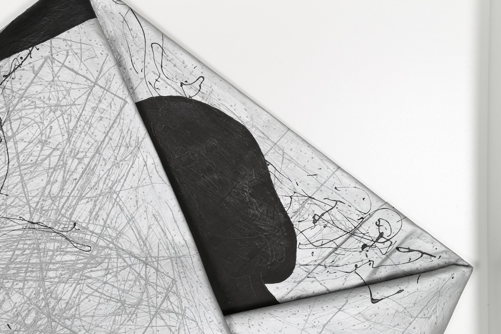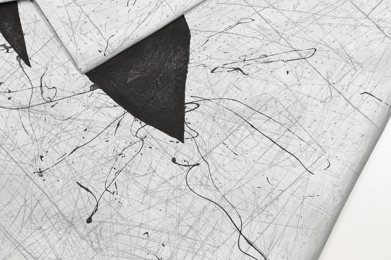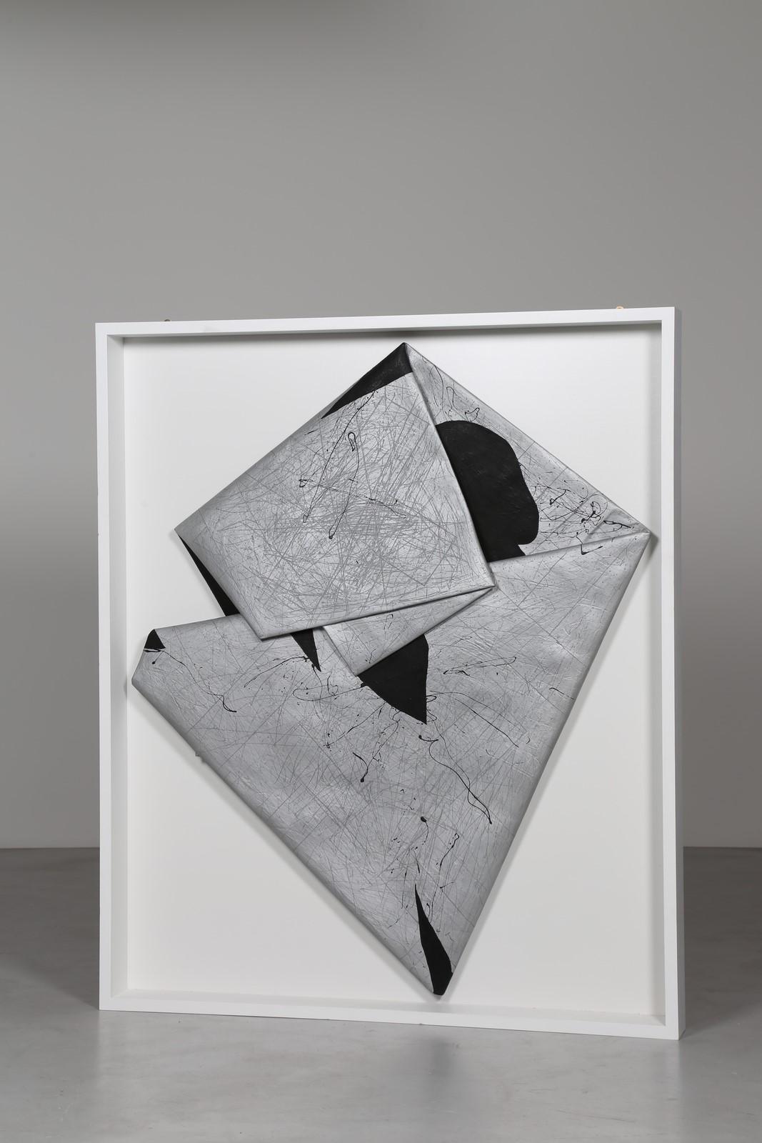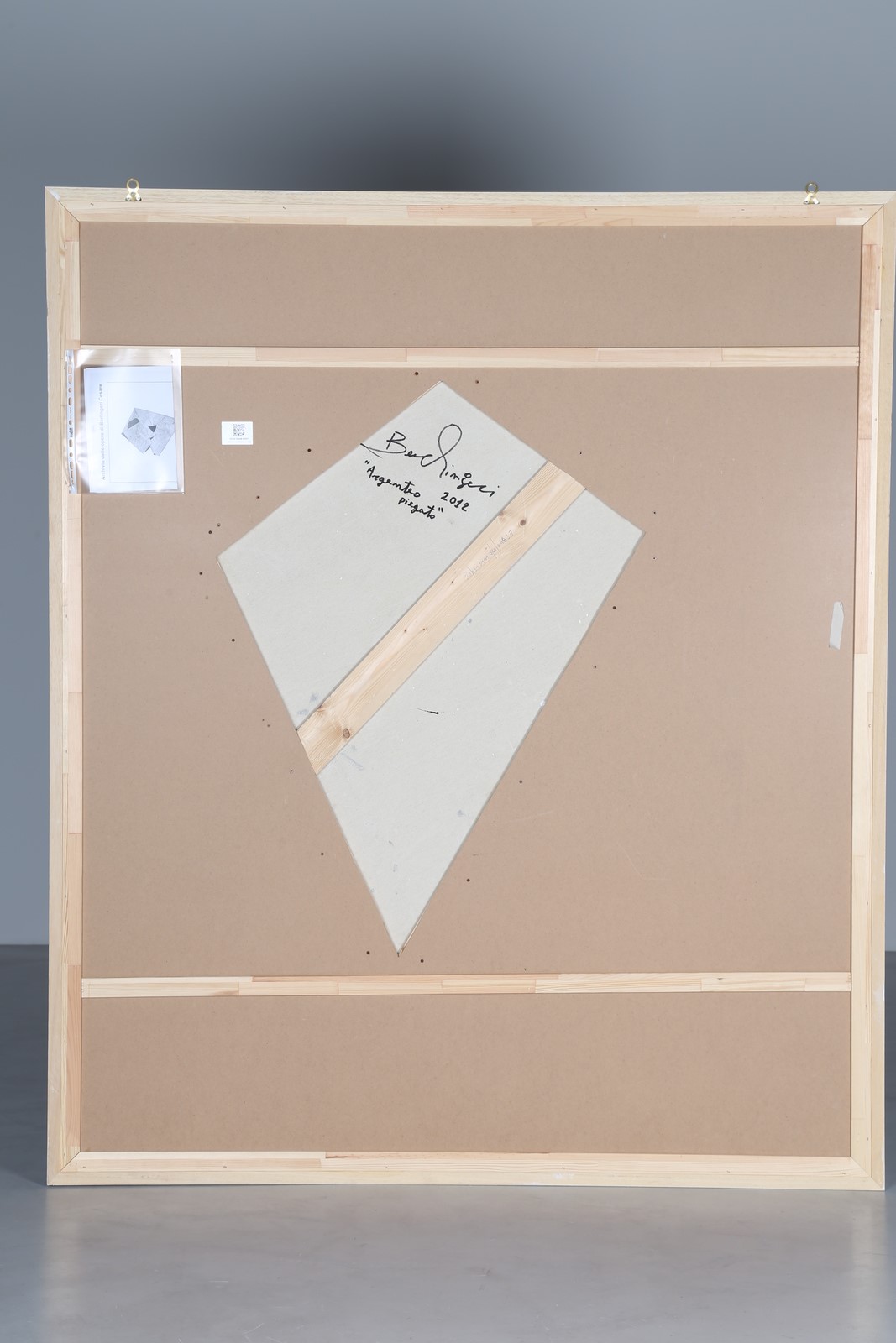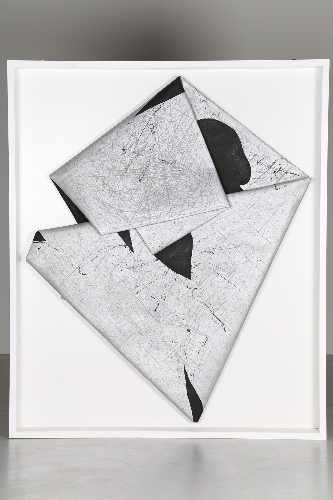 BERLINGERI CESARE (n. 1948) Ombra su argenteo segnato. 2012. Tecnica mista su tela. Cm 168,00 x 124,00. Al retro titolo, firma e anno. Opera archiviata presso l'Archivio delle opere di Cesare Berlingeri, Padova, come da documentazione fotografica allegata all'opera riportante il relativo numero d'inventario. Cornice presente