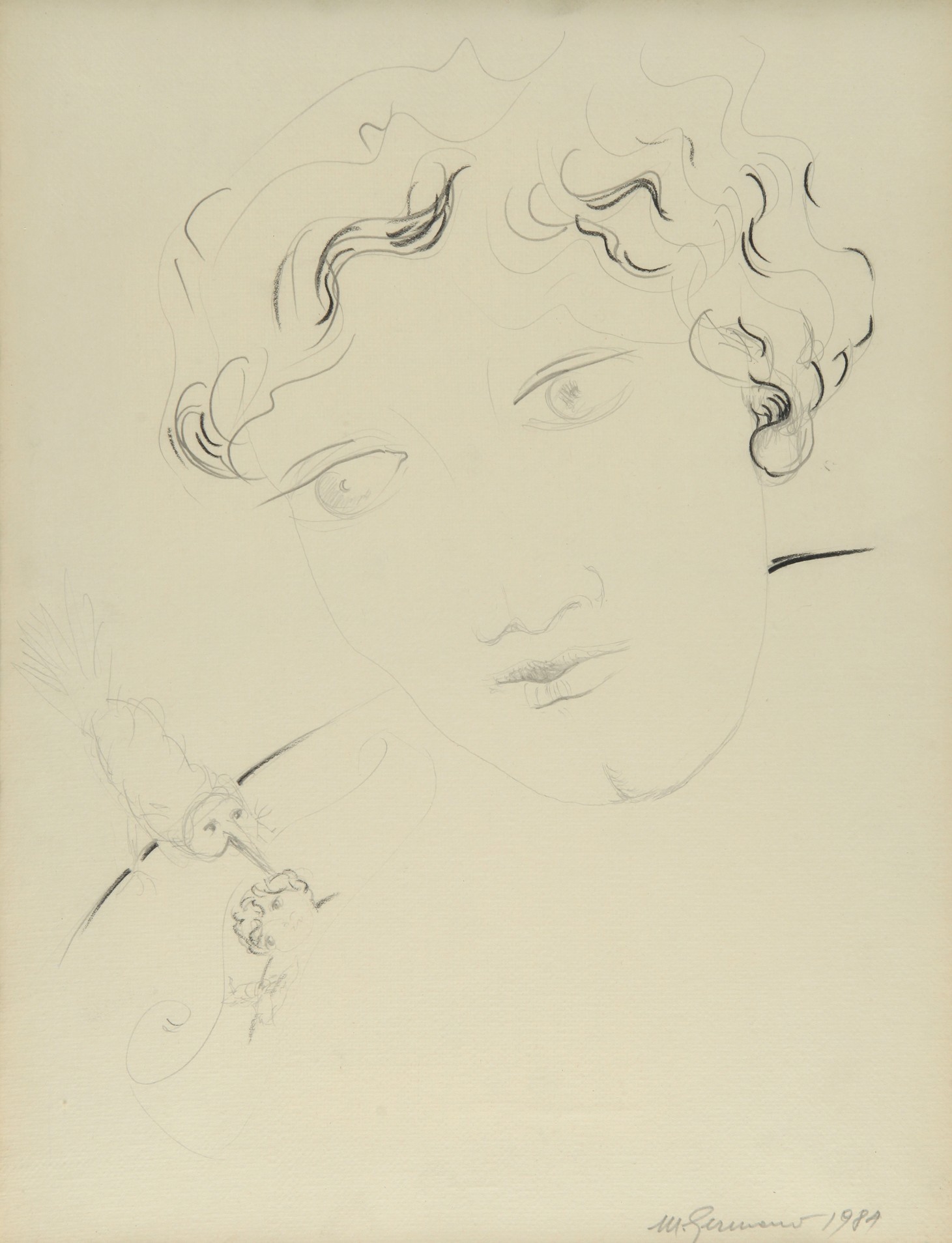 MIMMO GERMANA' (1944-1992) Senza titolo 1989 Matita e carboncino su carta intelata cm40x30 firmato e datatoto in basso a destra