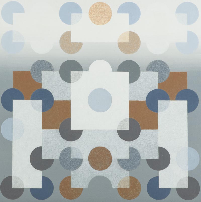Carlo Nangeroni Sovrapposizioni 2002 Acrilico su tela, cm. 61x61 Sul verso: firma e data; Etichetta e Timbri "Galleria Lagorio Arte Contemporanea", Brescia, con timbri e descrizione. Autentica Dell'Archivio Nangeroni, su foto con Archivio n° NC-VII-08037.