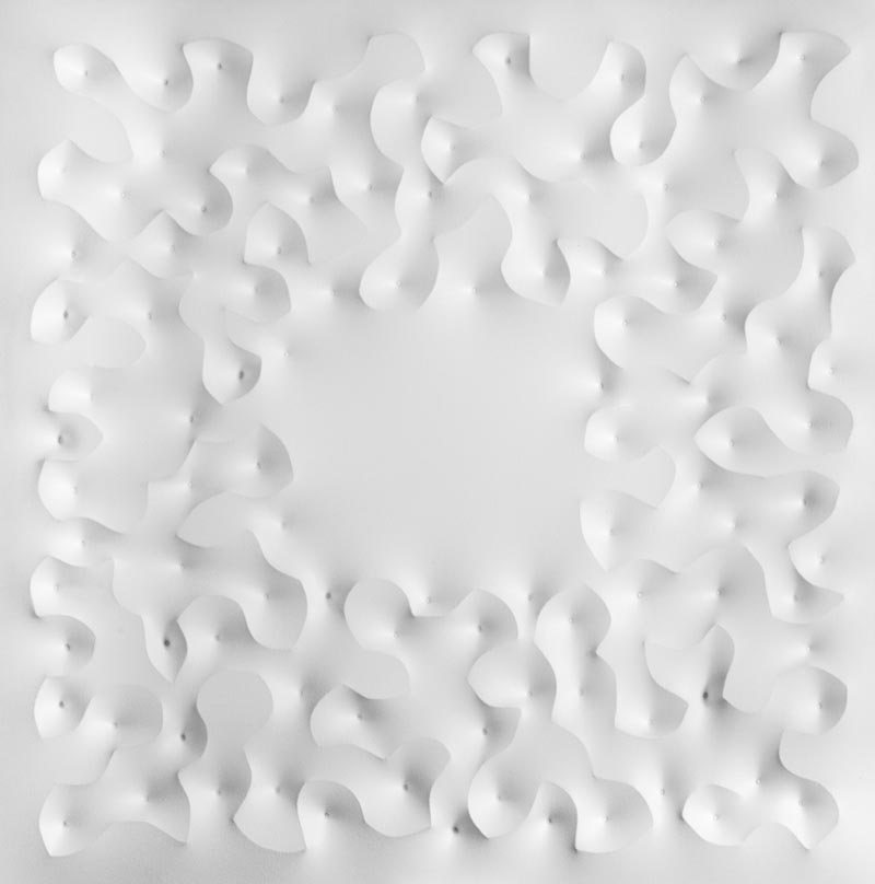 Giuseppe Amadio Agena 2004 Estroflessione su tela dipinta, cm. 70x70 Sul verso: firma e titolo; Etichetta "DZ Nuovo Segno", con descrizione. Autentica dell'Artista su foto con n° 387