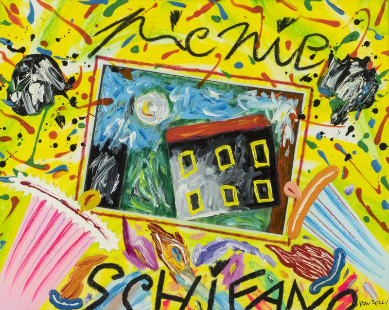 Bruno Donzelli Pic nic Schifano Olio e tecnica mista su tela, cm. 40x50 Firmato in basso a destra. Autentica dell'Artista su foto.