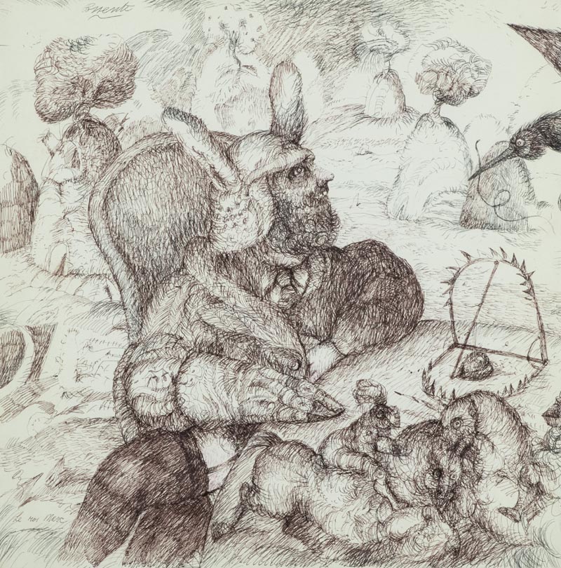 Antonio Possenti Senza titolo 1990 Tecnica mista su cartone, cm. 35x35 Firma in alto a sinistra; Sul verso: dedica a persone. Autentica dell'Archivio Antonio Possenti "Fantasio and Joe", Lucca, su foto con descrizione e n° 4717.
