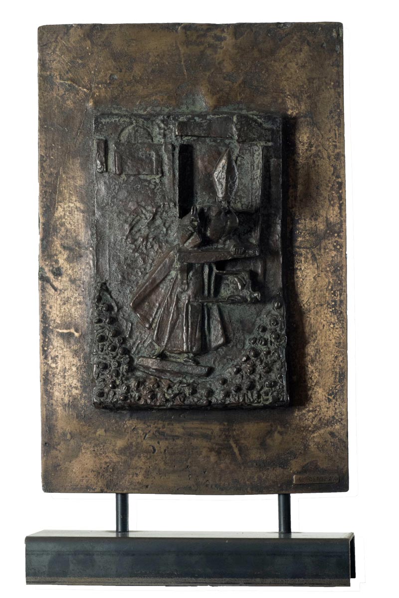 Angelo Biancini La benedizione di Giovanni Paolo II Scultura in bronzo, cm. 49x32,5x9 Firmato in basso a destra.