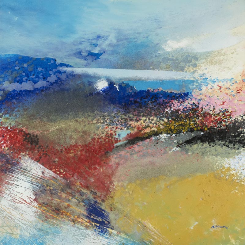 Michele Roccotelli Paesaggio Tecnica mista su tela, cm. 100x100 Firmato in basso a destra.
