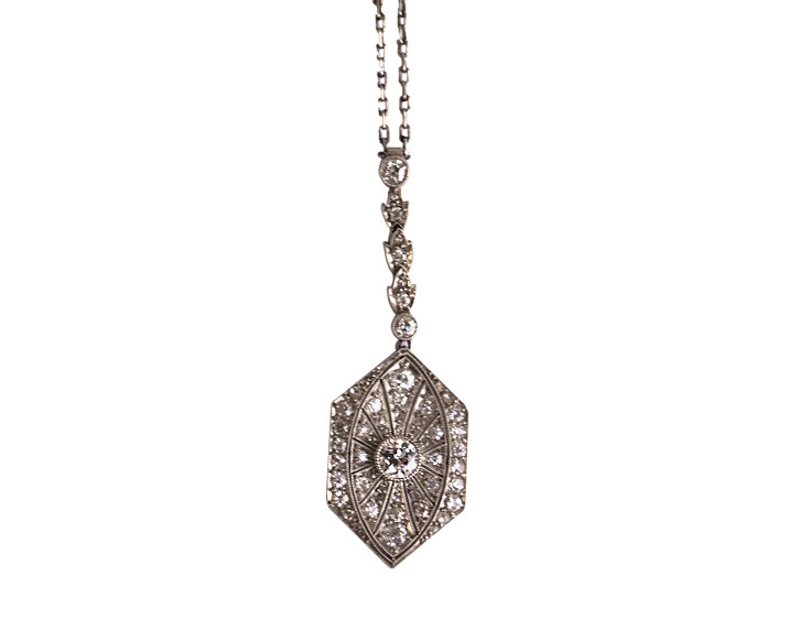 Lot 53 | Ciondolo "deco" un brillante cti.0.20. Oro bianco 18 Kti.